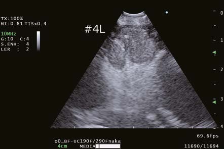 Obtaining improved B-mode images, which is the basis of all observation modes, will contribute the overall improvement of Endobronchial ultrasound-transbronchial needle aspiration (EBUS-TBNA) examinations. The EU-ME3 demonstrates improved ultrasound image resolution and depth compared to its predecessor, the EU-ME2. As a result, not only are the margins of the structure of interest more clearly delineated, but the texture of the lymph node cross-section can also be distinctly identified.