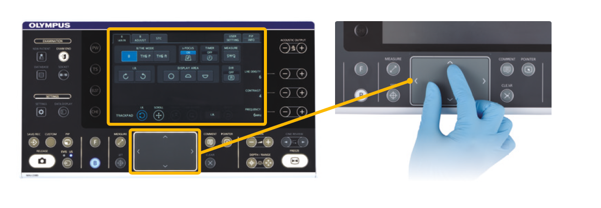 The EU-ME3 features an upgraded keyboard with a trackpad and a larger built-in LCD touch panel, whereas the EU-ME2 had an integrated trackball as its keyboard interface. The implementation of the trackpad in the EU-ME3 has notably enhanced operability during procedures, especially when performed with gloved hands. I have personally experienced that operability remains unaffected while wearing gloves.